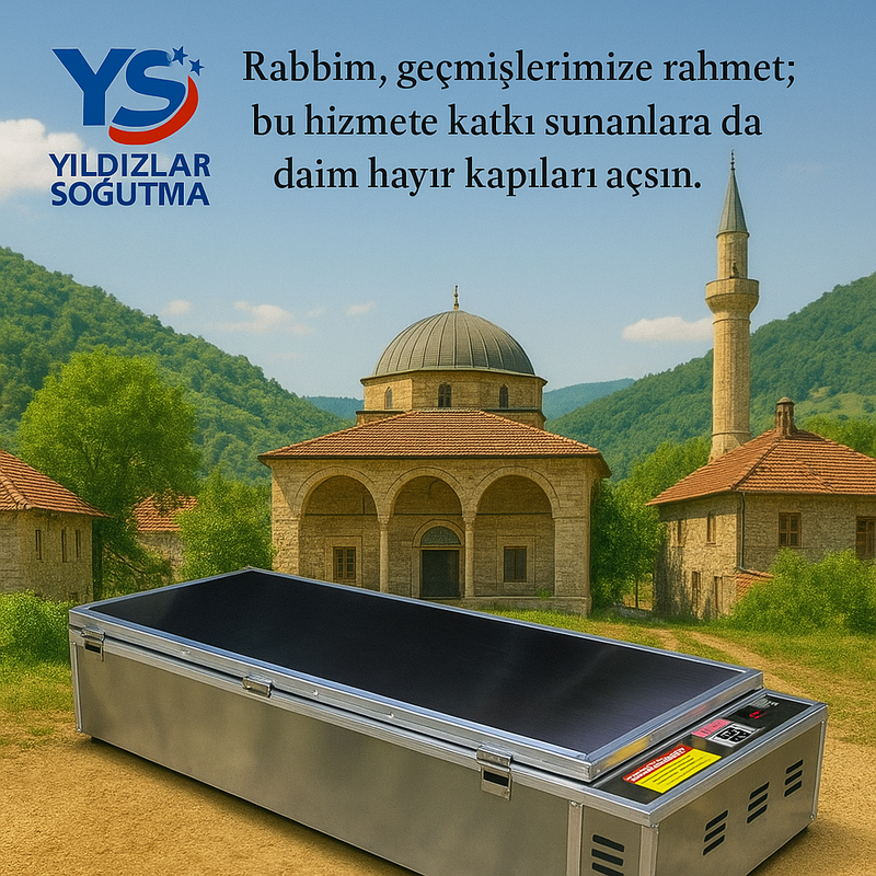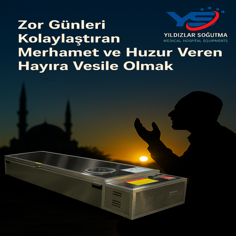 Yıldızlar Soğutma klimalı tabut sistemleri; cenazelerin hijyenik, saygılı ve İslami hassasiyetlere uygun şekilde muhafazasını sağlar. Satın alarak veya bağışta bulunarak bu hayra siz de ortak olun.